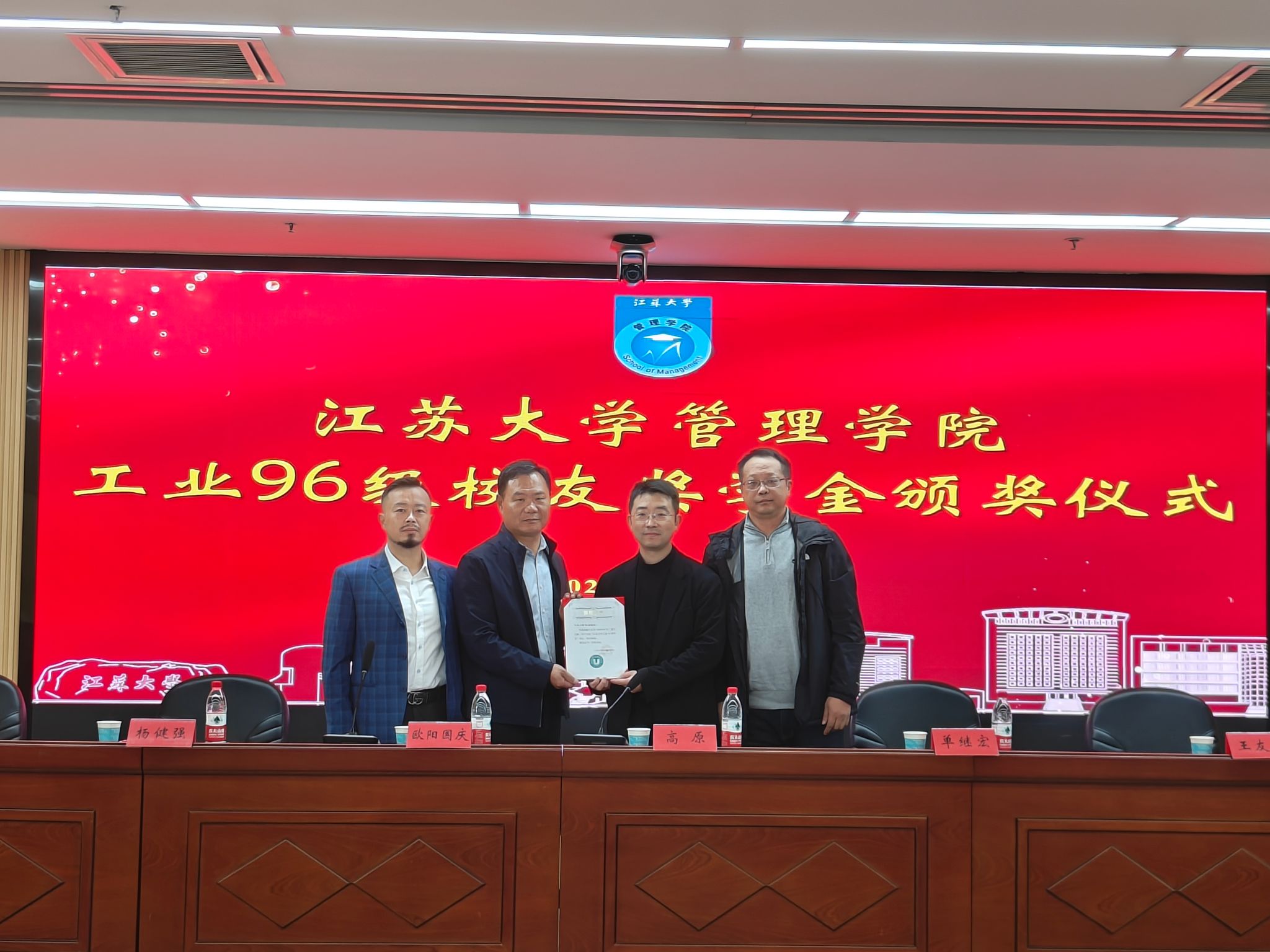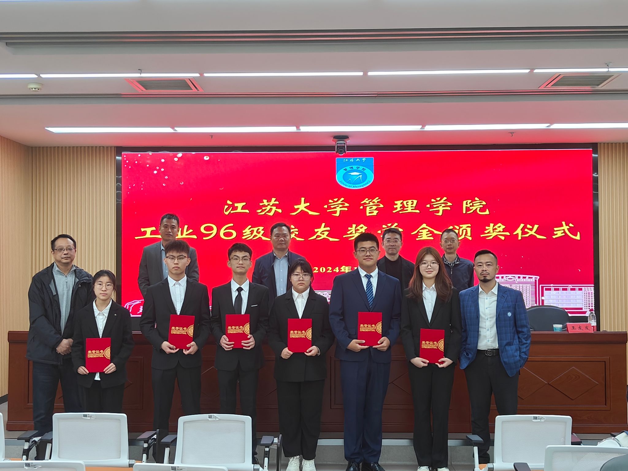 11月2日,江苏大学管理学院工业96级校友奖学金颁奖仪式在三江楼1501报告厅举行。工业工程96级校友代表高原、杨健强、单继宏,管理学院党委副书记、副院长、院关工委副主任欧阳国庆,工业工程系主任彭永涛副教授,副主任王友发副教授等出席,工业工程、物流管理专业师生代表参加了颁奖仪式。仪式由管理学院学工办副主任、院关工委秘书沙德利主持。